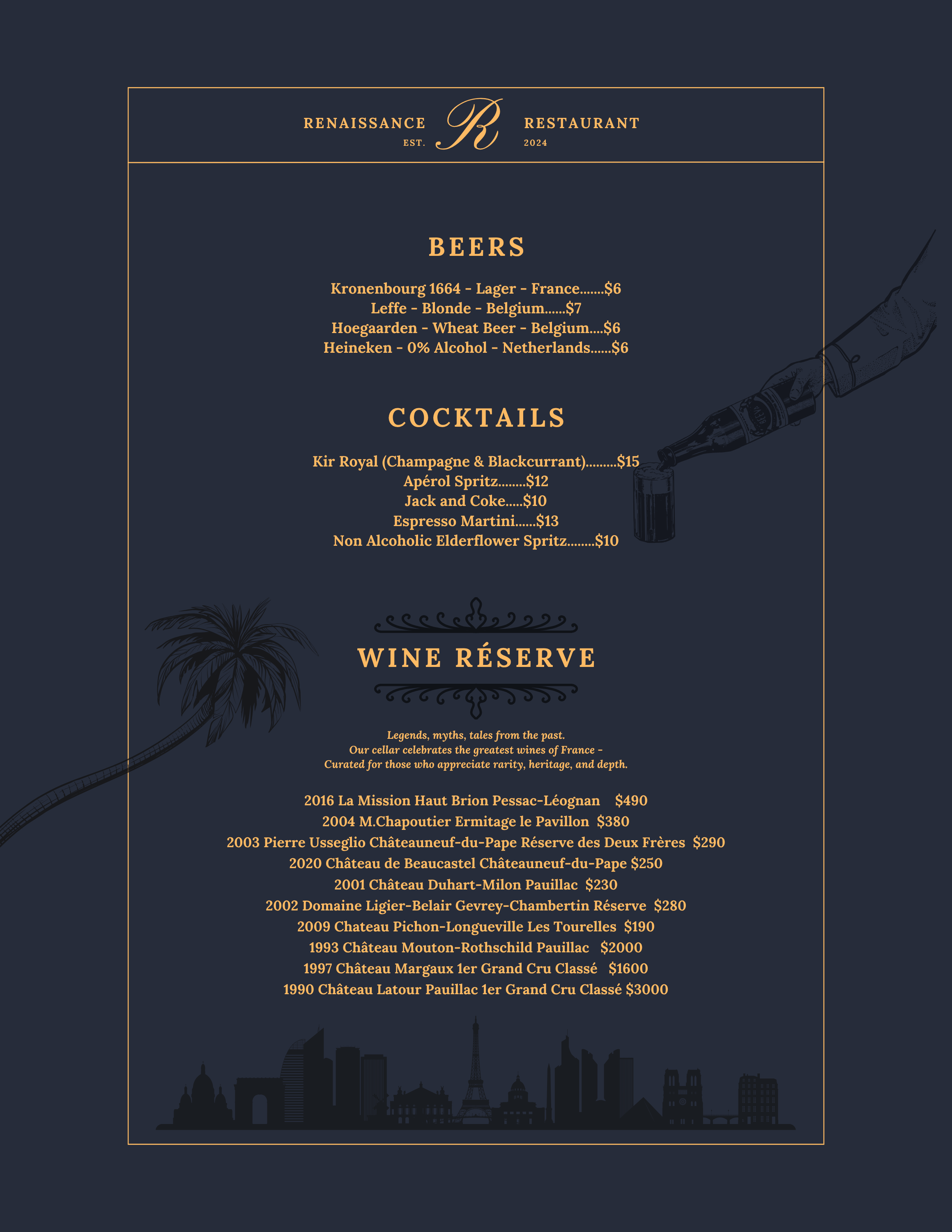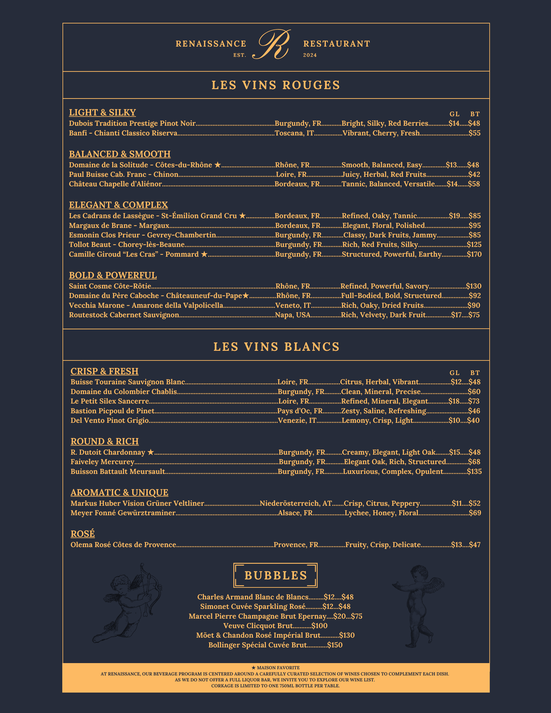 For private events and/or a full buyout, please reach out to us at info@renaissancefrench.com