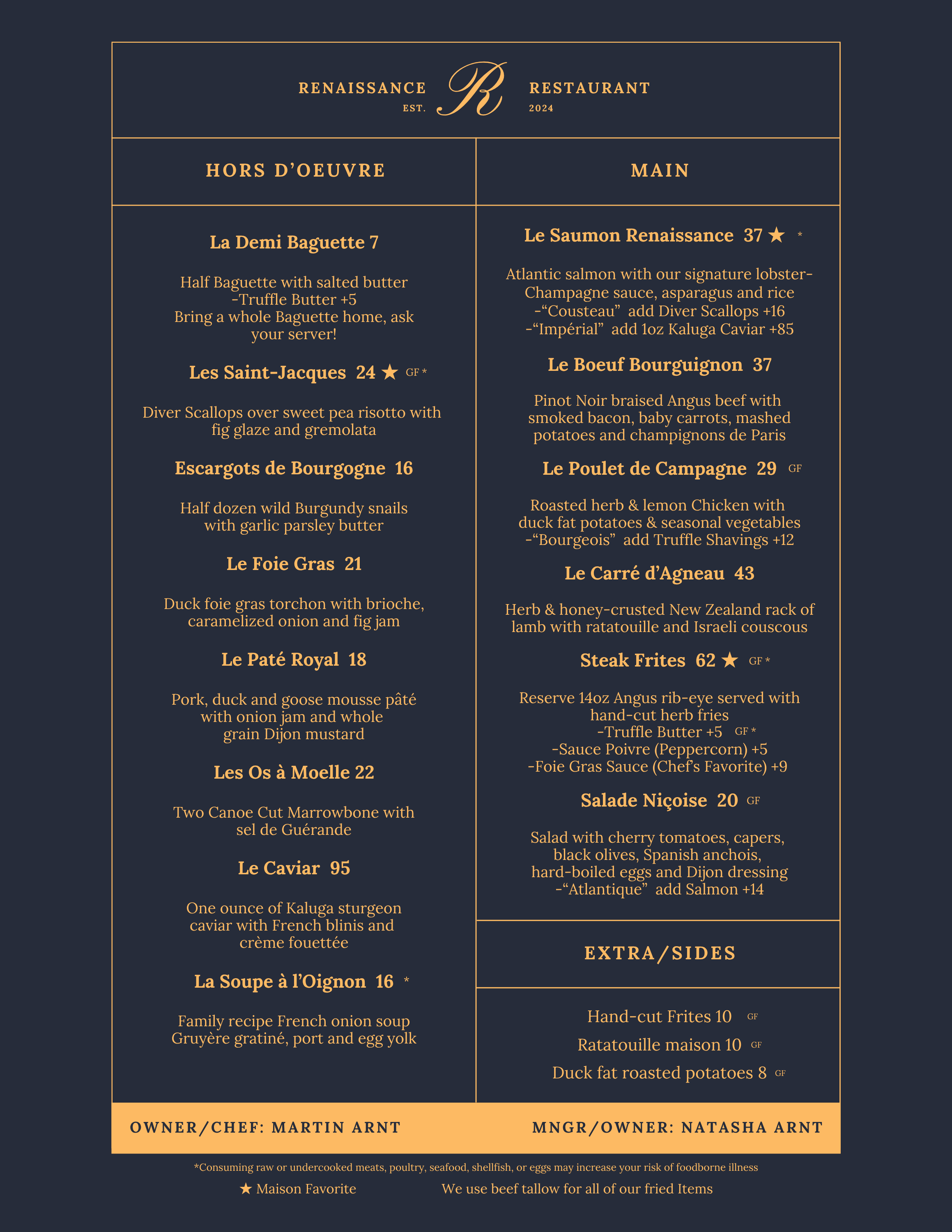 Renaissance is a “Bistro Chic” that is owned and operated by a Parisian Couple who are passionate about their country’s culture and food.